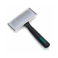 A Slicker Brush is a pet grooming tool used on dogs, with the primary purpose of getting rid of any debris and loose hair. It is typically rectangular in shape and has fine wire bristles, packed tightly together. Each wire bristle is angled slightly as to not scratch the skin. Other than for removing dirt and hair, this brush is ideal for keeping your animal’s coat in good condition, with the bristles distributing oil through the fur.